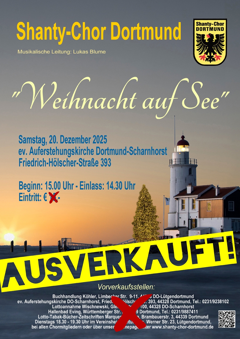 Beenden werden wir das Jahr am 20.12. mit dem Weihnachtskonzert in der ev. Auferstehungskirche in Dortmund Scharnhorst.