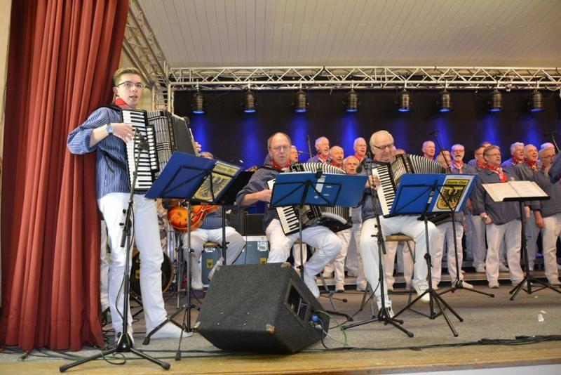 Mit dabei heute in der Combo: am Schlagzeug Wolfgang Sopott, an den Gitarren Manfred Czichy und Manfred Horsthemke, an den Akkordeons Willibald Schuster und Detlef Nehm und Lukas Blume. An den Percussion heute Erwin Dorn. Als Solisten fungierten: Manfred Rottke, Erwin Dorn, Peter Bercio und Wolfgang Bercio, Unser Chorleiter wie immer: Wolfgang Bercio.