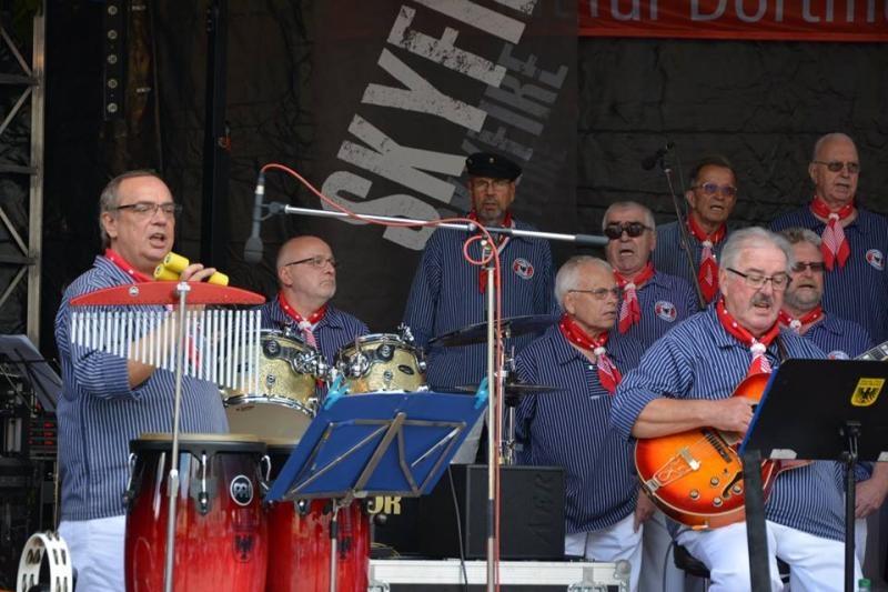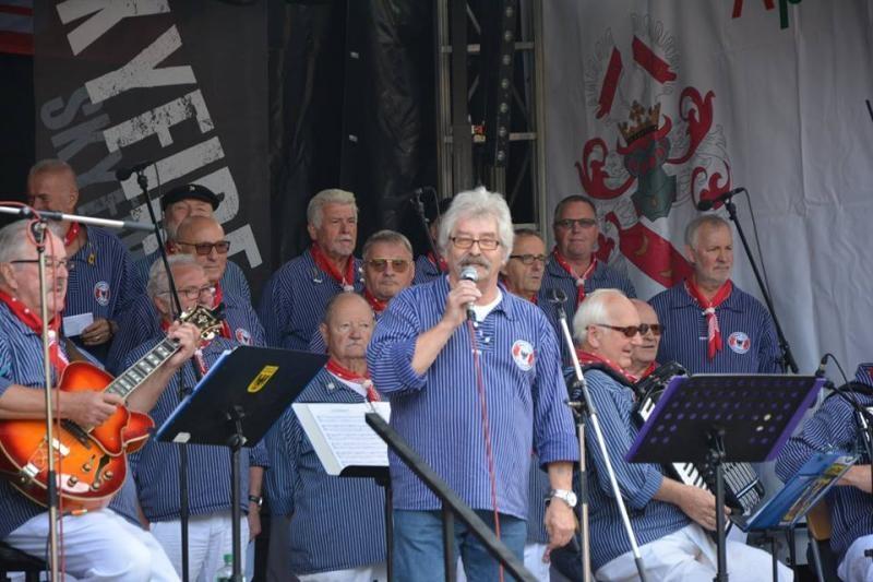 Nach der Pause, die ca. 20 Min dauerte, setzten wir "Sieben weiße Segel" und fuhren weiter mit der "Admiral of Scandinavia". Der Platz vor der Bühne war wieder sehr voll geworden. Auch unser Fährmann war wieder dabei mit "Fährmann hol über". "Adios Muchachos" und der Dortmunder Wind" durfte heute auch nicht fehlen. Wolfgang hatte wieder den weißesten Mann am Strand gesehen und wir sangen, schon als Zugabe, "Junge die Welt ist schön" - bis wir dann mit "Roseanna" unser Abschlusslied sangen.