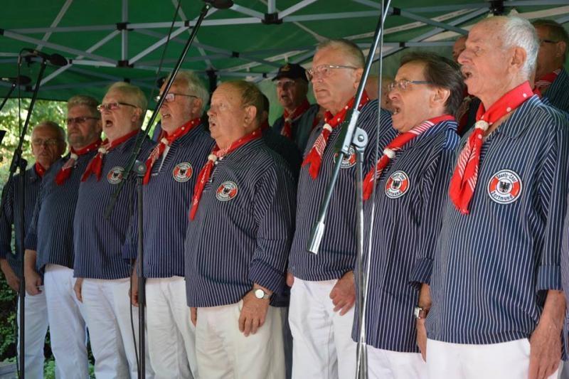Dort angekommen: noch nichts aufgebaut, keine Zelte für den Chor und auch keine Bierzeltgarnituren für die Gäste. Ratlos? Nein! Initiative zeigen, alles aus dem Hänger auspacken und schon einmal vorbereiten. Technik aufbauen, Podest für den Schlagzeuger Marcus aufbauen und die Podeste für die Sänger. Da endlich kamen die Zelte und Garnituren und auch die jungen Männer, die alles in Windeseile aufgebaut haben. Na dann konnte es ja losgehen.
