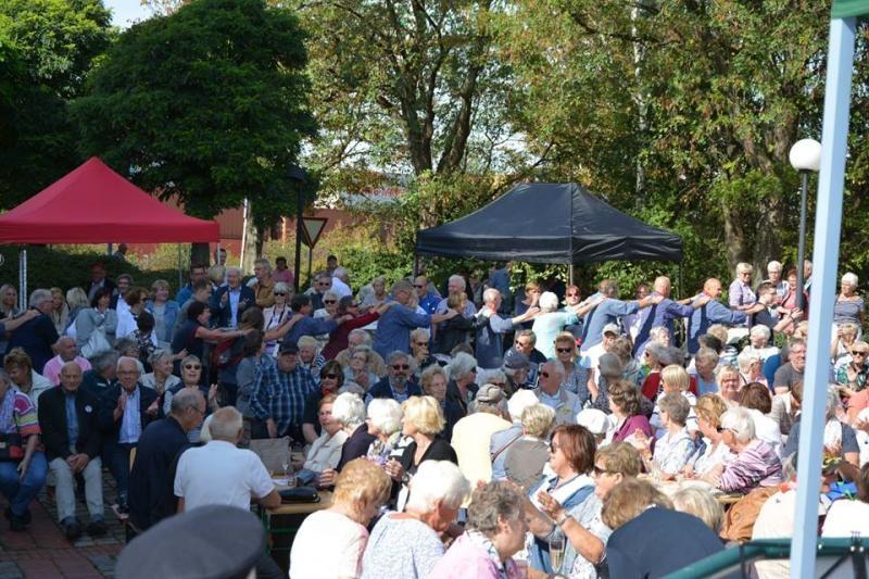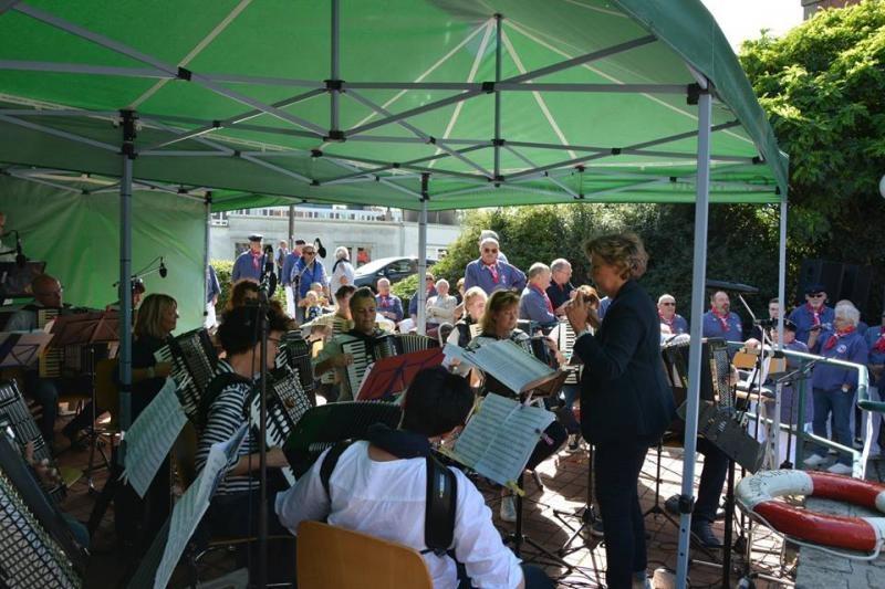 Eine kleine Umbauphase und das Akkordeon-Orchester unter der Leitung von Monika Lempart enterte die Bühne. Tolle Stücke hatten sie dabei unter anderem auch maritime Klänge, die sogleich Wolfgang und die Sänger gesanglich begleiteten. Das Akkordeon-Orchester nahm so richtig Fahrt auf und es ergab sich, dass einige Kameraden, voran Lukas, eine Polonaise starteten - einige Gäste machten auch sogleich begeistert mit.