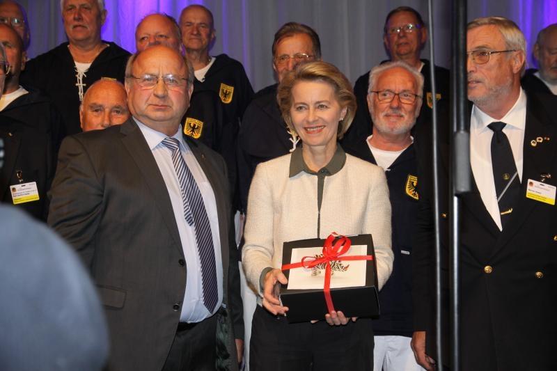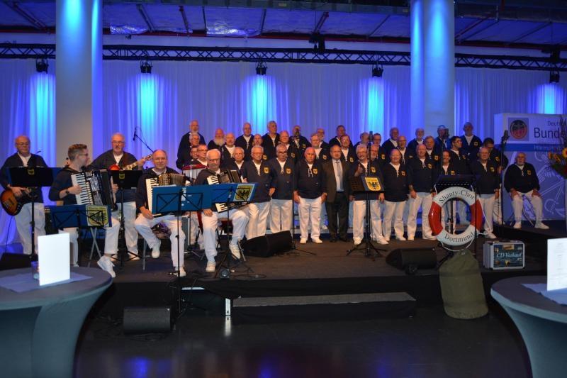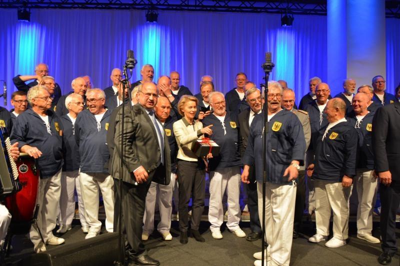 Pünktlich um 18.00 Uhr, zum Einlass, begann unsere „musikalische Untermalung“. Der Saal füllte sich zusehends und am Ende sangen wir vor über 600 geladenen Gästen. Darunter u.a. unsere Verteidigungsministerin Ursula von der Leyen. Diese erhielt, im Namen von unserem OB Ulrich Sierau, ein Gastgeschenk von uns. Die „Dortmunder Grüße“ überreichte unser Kamerad Reinhard Sack. Selbstverständlich durfte das obligatorische Foto mit ihr nicht fehlen - Und zur Weihnachtszeit erklingen in diesem Jahr, unter dem Tannenbaum der Familie von der Leyen, Weihnachtslieder vom Dortmunder Shanty-Chor ;-)