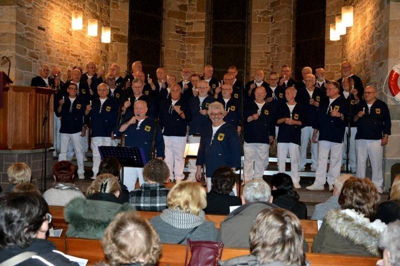 Was nun kam war auch wieder eine Premiere, "Down by the dockyard wall" - als Solist Erwin Dorn. Das Lied kam super an. Langsam näherten wir uns dem Ende des Konzerts zu. Das Winterwunderland" durfte auch nicht fehlen. und Peter Bercio sang "An Weihnacht bist du wieder mal allein“. Wolfgang Bercio, mit einem neuen Lied, wieder als Solist - "Land der tausend Kerzen". Hierbei kamen wieder unsere Kerzen zum Einsatz. Es folgte das "Abendgebet an See" und mit "Hallelujah" wieder eine Uraufführung. Udo Fülling und Wolfgang Bercio leuteten den Abschied ein. "Abschied heißt, wir müssen gehen", auch ein wirklich tolles Lied. Es folgte das Schlußlied "Auld Lang Syne" und anschließend, mit allen Gästen zusammen, das schönste aller Weihnachtslieder: "Stille Nacht, heilige Nacht".