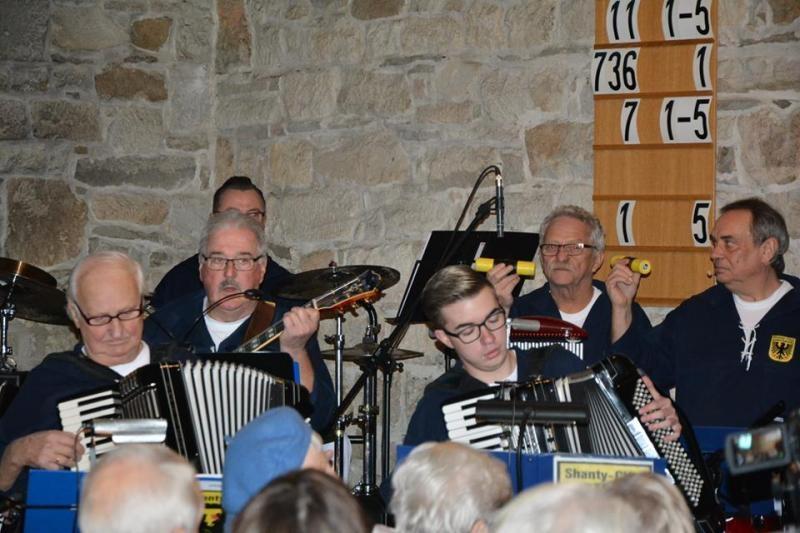 Vor dem nächsten Block stellte Jörg Szperna noch die Combo vor. Am Schlagzeug heute Marcus Höttler, an der Bassgitarre Manfred Horsthemke , an der Rhytmusgitarre Manfred Czichy, am Akkordeon Willibald Schuster, Detlef Nehm, und Lukas Blume. an den Percussions Erwin Dorn und Jörg Szperna.