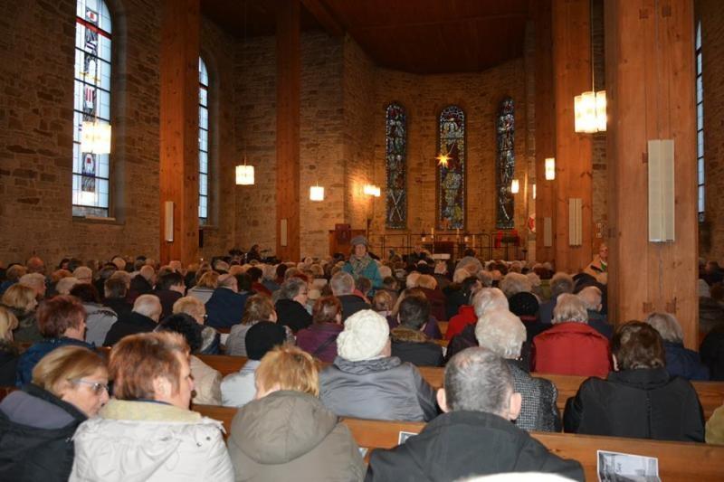 Nach dem Soundcheck drängten um 15.30 Uhr die Besucher durch das Portal - wie früher "Schlussverkauf" bei Karstadt ????. Jedenfalls: in Nullkommanix war die Kirche rappelvoll, es mussten sogar noch Stühle herangeschafft werden, irgendwie hat man sich mit dem Platzbedarf einzelner Gäste wohl verrechnet.
