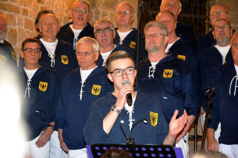 Das erste Lied erklang: "Weihnachtszeit auf den Meeren" - danach die Begrüßung der Konzertbesucher. Jörg Szperna übernahm wieder gekonnt die Moderation und sagte auch gleich den nächsten Titelblock an. "Wenn der weiße Schnee vom Himmel fällt" und "Weihnacht, Weihnacht", mit Solist Peter Bercio" und "Heilige Nacht am Hafen", sowie "Tausend Meilen von zu Haus".