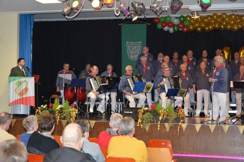 Glückwünsche überbrachten nicht nur befreundete Vereine und Verbände, sondern auch die Europaparlamentarierin Frau Dr. Renate Sommer - und wir überreichten viele musikalische Grüße, - so wie ein aktuelles, gerahmtes Chorbild mit Widmung und ein "Flachgeschenk".