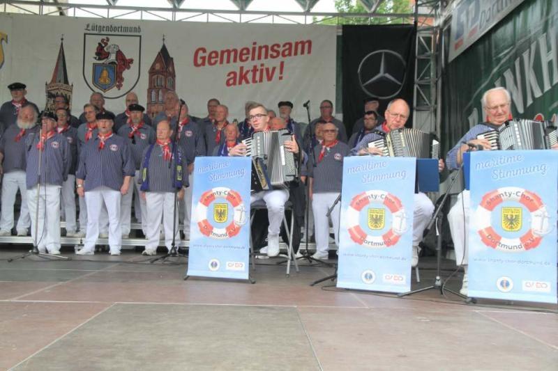 Danach sind wir wieder auf die Bühne und machten noch einmal Stimmung und zuletzt hat unser Shanty-Chor Dortmund noch ein kleines Bonbon, wir haben das Lütgendortmund Lied mit unserem Ehrenmitglied Rainer Sack gesungen.