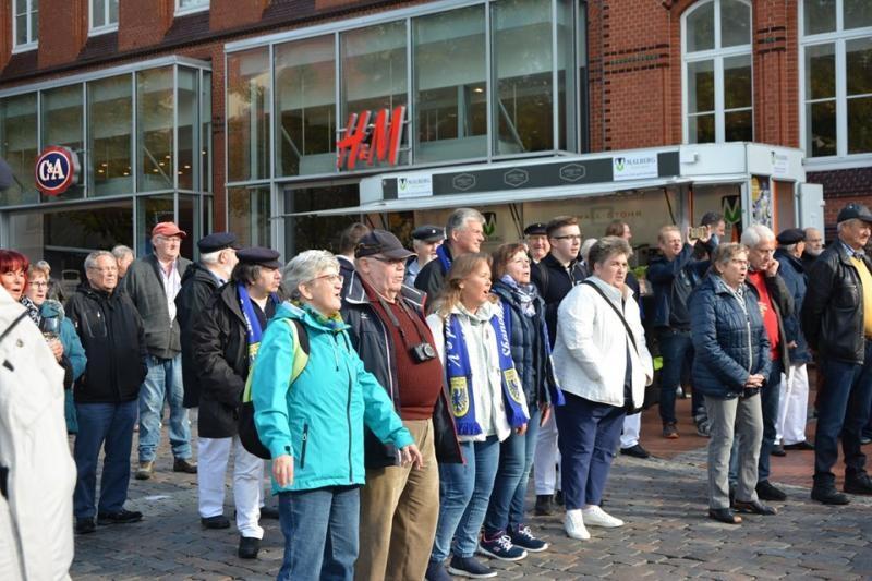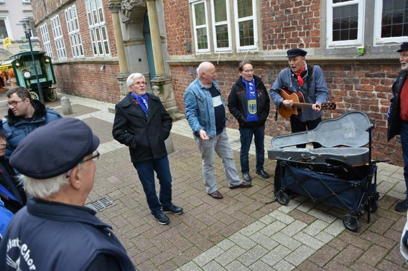 Alles bestens. Nach dem Einchecken und einer kurzen Pause ging es dann in die Innenstadt von Stade. Hier holten wir uns die ersten Eindrücke von den bereits anwesenden Chören und Ihrer Musik.