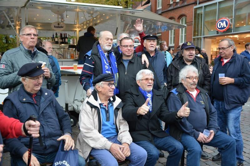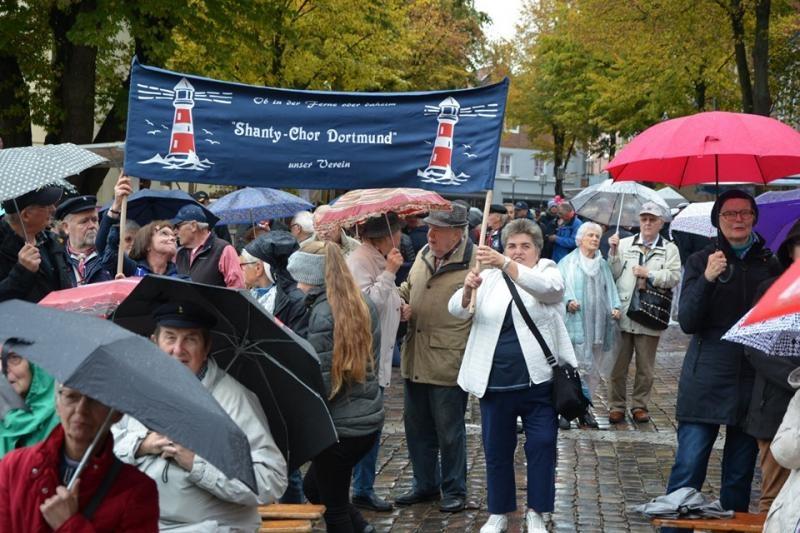 Um die Zeit bis zum nächsten Auftrittsort am "Stadthafen"‘ zu überbrücken, gaben wir am Fischmarkt ein kleines Sonderkonzert. Die Besucher blieben stehen, oder kamen einfach dazu, und wir sangen mit Ihnen einige bekannte Lieder.