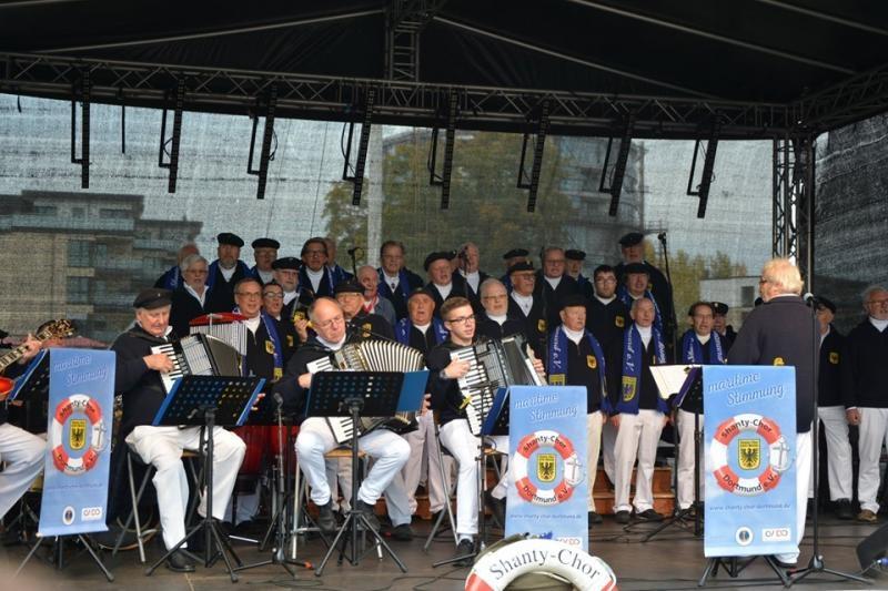 Am Sonntag folgten dann unsere Auftritte beim Festival. Zunächst ging es zur ersten Bühne auf den "Pferdemarkt". 38 Sänger und Musiker sorgten für Super Stimmung. Unter großem Applaus verließen wir nach 30 Minuten die Bühne.