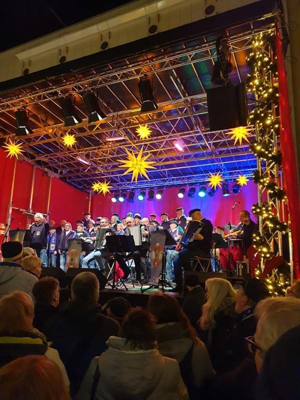 Es ist DER Höhepunkt schlechthin - und unser letzter Open-Air-Auftritt im Jahr: das zweistündige Konzert auf der Bühne auf dem Alten Markt. Wenn das Wetter mitspielt, so wie in diesem Jahr, gibt es vor und neben der Bühne kein Durchkommen mehr!