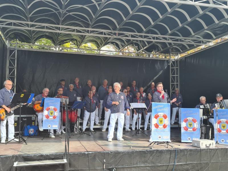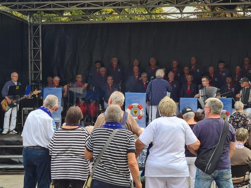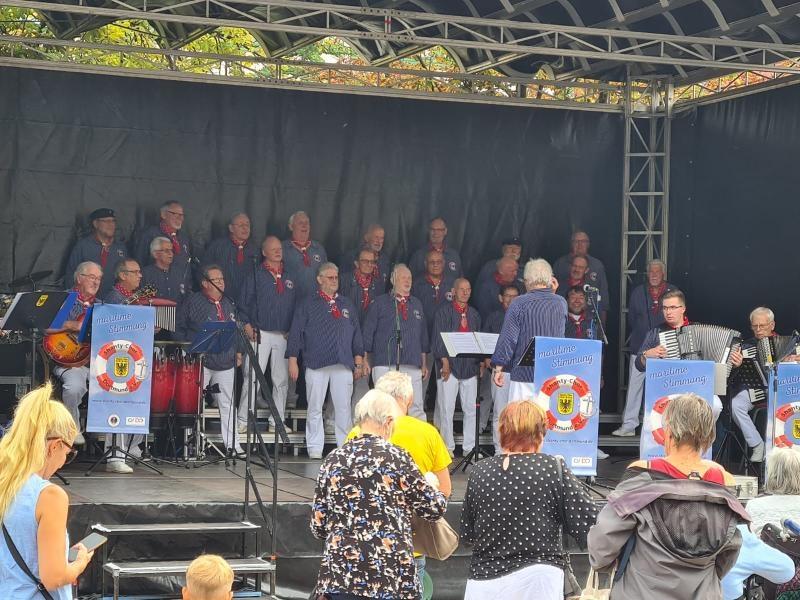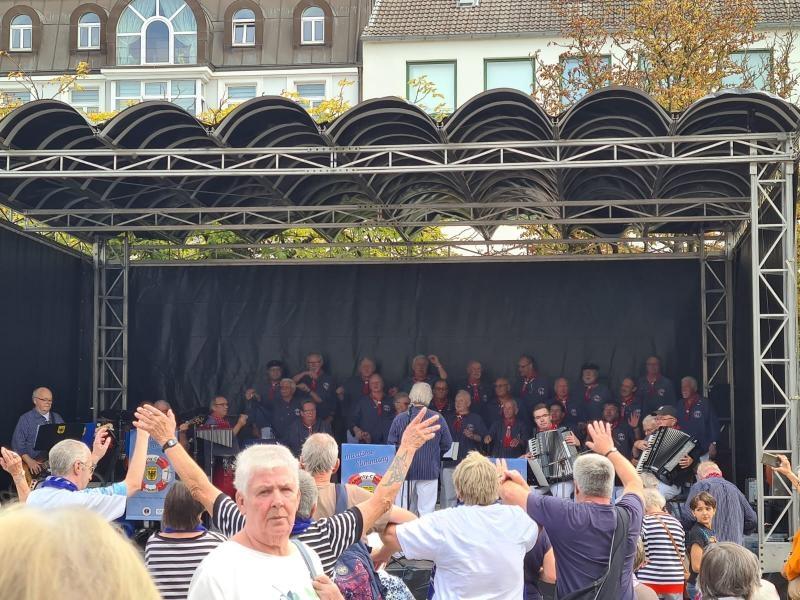 Nach langer Coronapause fand er endlich wieder statt - der traditionelle „Apfelmarkt“ in Aplerbeck. Und der Shanty-Chor Dortmund durfte wieder, auf der Bühne auf dem Marktplatz, dieses Event mitgestalten. Der Wettergott meinte es gut mit uns und den Organisatoren - denn er ließ die Sonne mit den Besuchern „um die Wette strahlen“. Viele Festbesucher (und – sichtbar - auch viele Fans vom Chor) standen vor der Bühne oder saßen an den Tischen, genossen das ein oder andere Kaltgetränk, sangen mit, schunkelten „was das Zeug hielt“, klatschten rhytmisch mit und ließen sich von unserer Begeisterung und Freude anstecken – der ein oder andere schwang sogar das Tanzbein. Wolfgang Bercio hatte mal wieder „den richtigen Riecher“ bei der Liedauswahl. Für jeden Geschmack war etwas dabei – und die „neuen“ Lieder (einstudiert in der auftrittsfreien „Coronazeit“) kamen, wie auch alle anderen Lieder, super an. Der Chor, die Solisten und die Combo zeigten sich mal wieder "von ihrer besten Seite" ;-) Für uns und für die vielen Gäste verging der zweistündige Auftritt viel zu schnell. Doch keine Bange: wer noch nicht genug von uns hat kann uns bereits am 11.9. ab 11.00 Uhr, am „Alten Hafenamt“ beim Hafenfest (gemeinsam mit dem Akkordeonorchester Dortmund), wieder hören und sehen. Wir freuen uns jedenfalls auf Euch! Bis denne….. Euer Tastentippser