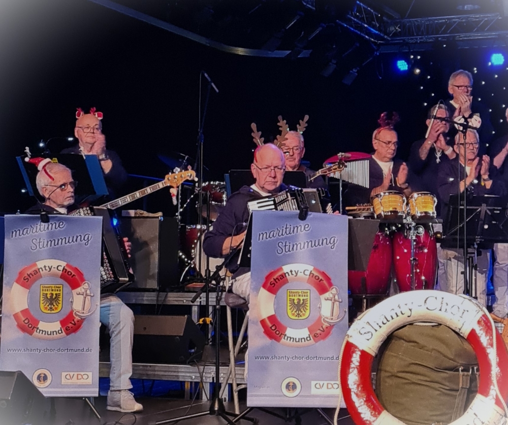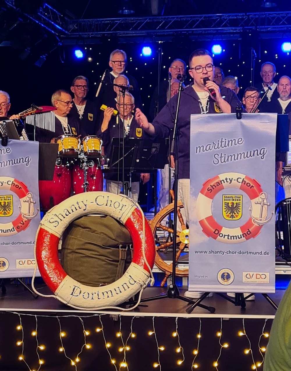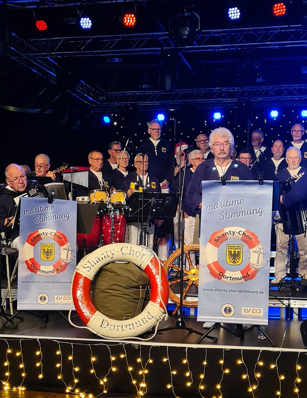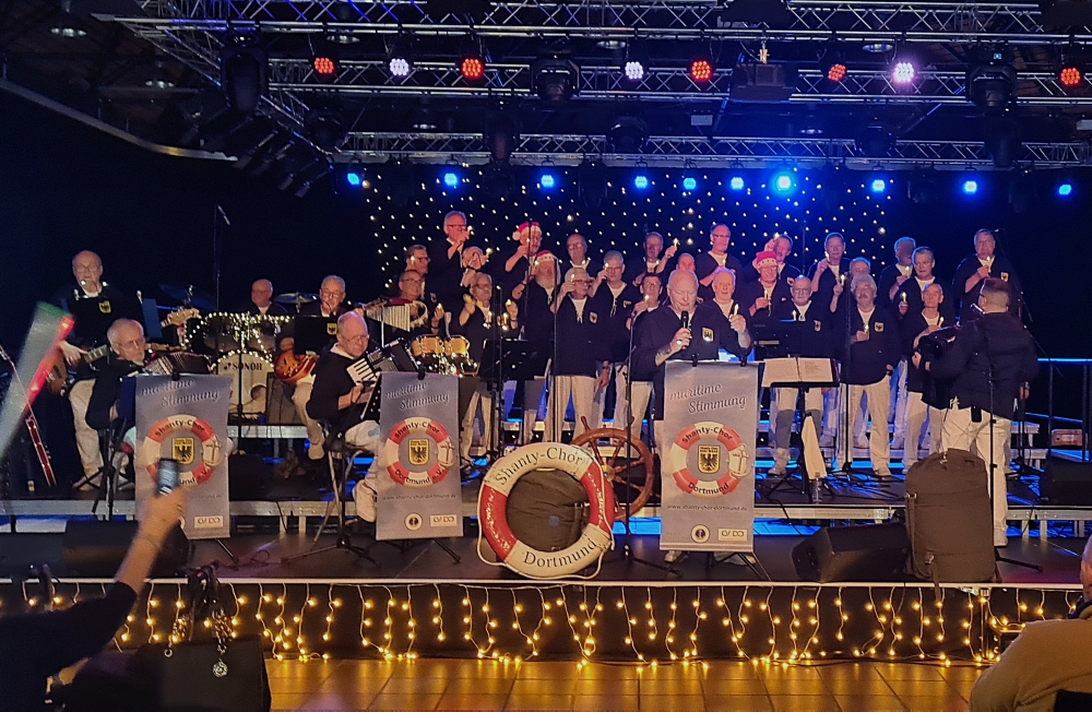 Doch nun zum eigentlichen Auftritt. Vor erwartungsvollem Publikum bot der Chor und die Combo ein wunderbares, gelungenes Weihnachtskonzert. Die von Chorleiter Lukas Blume ausgesuchten, weihnachtlichen „Seemannslieder“ brachten einen Hauch von Wehmut, Heimweh und die Wünsche und Sehnsüchte der Matrosen zur Weihnachtszeit gefühlvoll zur Geltung.