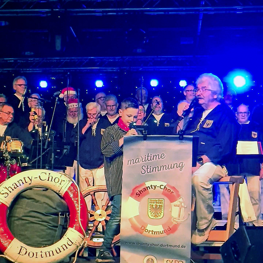 Ein Höhepunkt war der Auftritt vom jüngsten Shantychor-Solosänger Marlon Schwarz (9), der mit dem Lied (gemeinsam mit Wolfgang Bercio im Duett) „Papa warum bist du Seemann“ das Publikum begeisterte. Der ein oder andere Zuhörer bekam feuchte Augen – und auch das ein oder andere Tränchen sah man fließen.