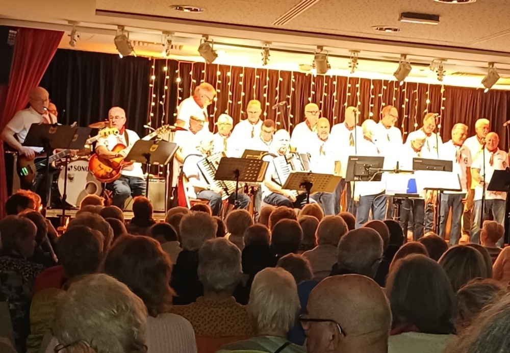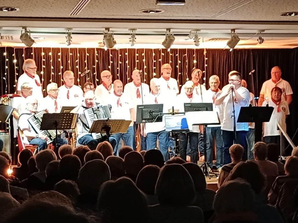 Gleich zu Anfang, beim Eröffnungslied „Jingle Bells“, sangen die Besucher kräftig mit und man spürte: das Publikum „hat heute richtig Bock“ – genau wie wir! Und so war es auch! Die Lieder (ein Querschnitt aus unserem großen Weihnachtsprogramm) waren ganz nach dem Geschmack des Publikums. Es wurde mitgesungen, geklatscht und geschunkelt was das Zeugs hielt. Auch die Solisten (Udo Fülling, Jörg Szperna, Erwin Dorn, Lukas Blume, Kalle Poser und Gerhard Mielke) überzeugten mit ihren Darbietungen.