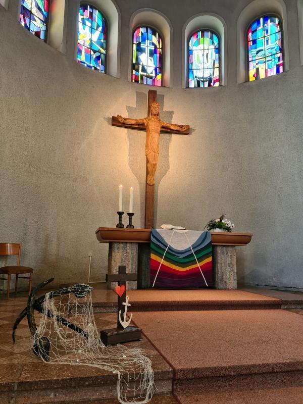 Mal ein ganz anderer, besinnlicher Auftritt von unserem Chor. Dieses Mal gastierten wir auf (pardon!) in einem Schiff! Genauer gesagt in einem Kirchenschiff. In der Auferstehungskirche durften wir den Sonntagsgottesdienst, der sehr gut besucht war, mitgestalten. Unsere Lieder „Ewig rauscht das Meer“, „Stille auf dem Meere“, „Seemann deine Heimat ist das Meer“, „Wenn die Sehnsucht nicht wär“, „Junge, da hab ich das Beten gelernt“, „Solang der Leuchtturm noch steht“ und „Fields of Athenry“ passten hervorragend zu dem Gottesdienst der unter dem Motto „Sehnsucht“ stand. Und mit dem Medlay „Blaue Jungs“ brachten wir, nach dem offiziellen Gottesdient, noch etwas „Stimmung unter Deck“. Langanhaltender Applaus und die Forderung nach Zugabe (die wir - schweren Herzens! - leider nicht geben konnten) waren der Lohn für einen kleinen aber feinen Auftritt! Wir bedanken uns bei der Pastorin Ruth Niehaus für die Einladung zu diesem außergewöhnlichen Gottesdienst, beim Organisten Bodo Majora für die musikalische Begleitung beim Gottesdienst. Unser ganz besonderer Dank geht an die Frauen des Presbyteriums, die uns anschließend mit Kaffee und Kuchen herzlich bewirteten. Euer Tastentippser Jörg P.S.: Die, im Anschluss eingesammelte, Kollekte wird dieses Mal an die DGzRS weitergeleitet! Eine schöne, passende Geste - und ein toller Einfall!