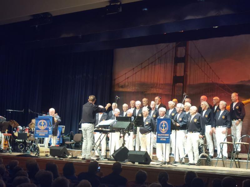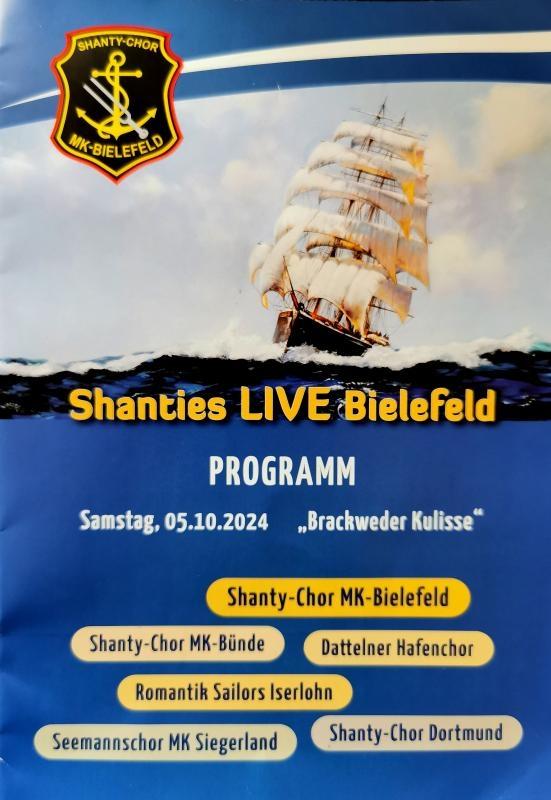An diesem Samstag machten wir uns mit Musikern, Sängern und Fans auf den Weg nach Bielefeld. Hier veranstaltete der Shantychor der MK Bielefeld das traditionelle Shanties-Live. Wir trafen uns um 10.45 Uhr am Vereinsheim, luden das erforderliche Equipment in den Bus und machten uns um 11.00 Uhr auf den Weg nach Bielefeld. Dort angekommen hieß es: ausladen und fertig zur Stellprobe und Soundcheck. Nach der Einnahme des (vorbestellten) Essens warteten wir auf den Beginn der Veranstaltung um 16.00 Uhr. Den Anfang machte, natürlich, der Shantychor der MK Bielefeld Eine gelungene Eröffnung. Anschließend kamen unsere Freunde aus Bünde an die Reihe – gefolgt vom Dattelner Hafenchor. Nach einer halbstündigen Pause enterten wir die Bühne und gaben eine Kostprobe unseres Könnens. Unsere Liederwaren ganz nach dem Geschmack des Publikums und kamen super an – der Auftritt konnte sich sehen und hören lassen (wie die der anderen Chöre natürlich auch!). Großartiger Applaus war der Lohn für eine gelungene Darbietung. Die geforderte Zugabe konnten wir – aus Zeit- und Programmgründen – leider nicht geben. Nach uns folgten noch die Romantik-Sailors aus Iserlohn und der Seemannschor MK Siegerland. Zu guter Letzt gab es das große Finale - mit allen Chören! Mit den, gemeinsam gesungenen, Liedern „Kneipe am Moor“, dem „Gorch-Fock Lied“ und „Wir werden uns Wiedersehn“ ging eine schöne Veranstaltung zu Ende. Langanhaltender Applaus war der Dank für ein gelungenes Event. Fazit: jeder teilnehmende Chor überzeugte das Publikum mit seinem Können und dargebotenem Repertoire und es ist immer wieder Interessant wie unterschiedlich manch ein Lied interpretiert wird – und genau das macht so ein Shanties-Live-Treffen auch aus. Es machte jedenfalls mal wieder richtig Spaß „alte“ Kameraden, Freunde und Weggefährten zu treffen, Informationen auszutauschen und ein bisschen „Seemannsgarn“ zu spinnen. Euer Tastentippser Jörg P.S.: Weitere BIlder von unserem Chor folgen in Kürze!!!!!