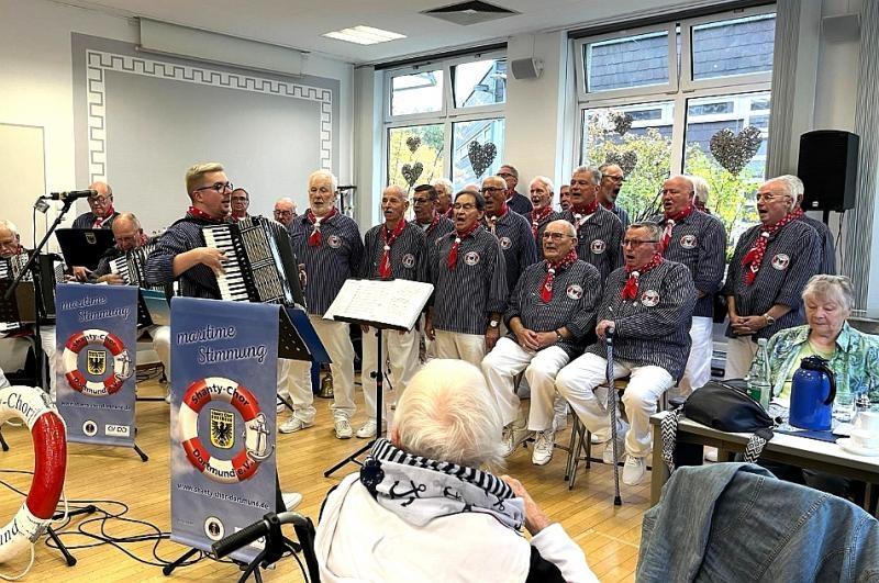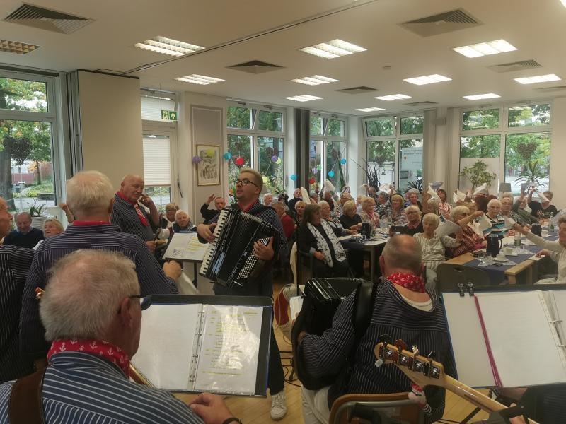 Ein Konzert ganz nach dem Geschmack des Chores - und des Publikums! In fast "privatem" Rahmen haben wir den Gästen die "große, weite Welt" nähergebracht. Bereits zum x-ten Mal (die genaue Anzahl ist mir leider entfallen!) nahmen wir die „Scharnhorster“, mit unseren Liedern, mit auf große Fahrt. Schon beim ersten Lied war das Eis zwischen Chor und Publikum gebrochen - und das lag bestimmt nicht an den (sagen wir mal...) "angenehmen Temperaturen" im ausverkauftem Saal des Begegnungszentrums. Unsere Lieder "Hejo Hejo Gin und Rum", "Capitano", "Santo Domigo" oder „Wenn die Sehnsucht nicht wär“ (um nur einige zu nennen) kamen jedenfalls beim Publikum super an. Es wurde mitgesungen, geklatscht und geschunkelt was das Zeug hielt und die Melodien sorgten für langanhaltenden Applaus. Die vom Publikum geforderten Zugabe, nach dem offiziellen Konzertende, wurde selbstverständlich gerne mit "Wir werden uns Wiedersehen" gegeben. Getreu „Dalli-Dalli“ (oder Hans Rosenthal zu Ehren) wurde der Chor laut vom Publikum mit „Das war------Spitze!“ verabschiedet - und der Chor konnte nach zweistündigem Konzert, unter lautem Applaus und „Bravorufen“, zufrieden die Bühne verlassen. Euer Tastentippser Jörg