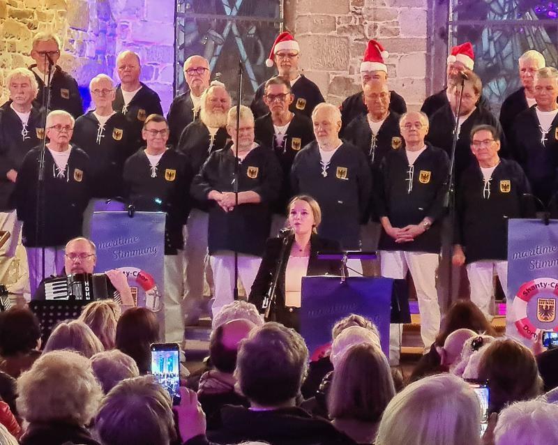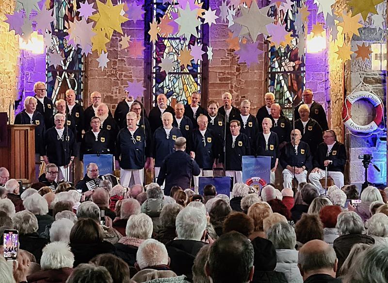 Dass die Eintrittskarten für das Weihnachtskonzert vom Shanty-Chor Dortmund (unter der Leitung von Lukas Blume) in der Bartholomäuskirche in Lütgendortmund schon Wochen vorher vergriffen waren, zeigt wie gern sich die Fans und Zuhörer von den Seebären und ihren Liedern auf die Weihnachtszeit einstimmen lassen. Die Kirche war bis auf den letzten Platz besetzt – sie platzte – wie sagt man so schön – „aus allen Nähten“. Pünktlich um 15.00 Uhr konnte das Konzert, das unter dem Titel „Seemanns Weihnacht“ stand, beginnen. Es gab bei diesem Konzert jedoch nicht nur maritime Weihnachtslieder zu hören. Auch Titel wie „Junge da hab´ ich das Beten gelernt“, „John Browns Body“, oder „Wenn die Sehnsucht nicht wär´“ wurden ins Programm mit aufgenommen, welches vom musikalischen Leiter Lukas Blume zusammengestellt wurde und keine Wünsche offenließ. Es war abwechslungsreich, begeisterte die Zuhörer und animierte zum Mitsingen und zum Schunkeln. Ein Höhepunkt des Konzertes war der Auftritt der Gastsängerin (und ehemaligem Dortmunder Sea-Kid) Sherina Cooper, die mit „Weit übers Meer“ (im Duett mit Wolfgang Bercio) und ihrem Solostück „Halleluja“ die Zuhörer begeisterte und das Publikum zu „Bravorufen“ und „Standing Ovation“ veranlasste! Ohne Zugabe durften die Akteure, nach dem Konzert, die Bühne nicht verlassen. Als Dank, für den nicht enden wollenden Applaus, stimmte der Chor zwei beliebte Lieder aus dem Jahresprogramm 2024 an: „Heimat deine Sterne“ und „Caprifischer“. Auch hier sangen die Besucher lautstark mit! Als nach knapp zwei Stunden Konzert das Publikum, gemeinsam mit dem Chor, „O du Fröhliche“ und „Stille Nacht, heilige Nacht“ anstimmten, machte sich auch beim letzten Besucher Weihnachtsstimmung breit. Neben dem Chorleiter und Sherina Cooper begeisterten als Solisten auch: Wolfgang Bercio, Peter Bercio, Erwin Dorn, Günter Stader und Kalle Poser. In der Combo überzeugten an den Instrumenten: Wolfgang Zopott (Schlagzeug), Erwin Dorn und H.-Jörg Szperna (Percussion), Manfred Horsthemke (Bass), Manfred Czichy (Gitarre) und an den Akkordeons Sven Werner, Johannes Velmanns, Dr. Detlef Nehm und Manfred Knier. Durch das Programm führte, mit einer abwechslungsreichen und kurzweiligen Moderation, H.-Jörg Szperna. Wer für dieses Konzert keine Karten mehr ergattern konnte, hat die Möglichkeit am 21.12.24 um 16.00 Uhr, in der ev. Kirche in Bochum Werne, Kreyenfeldstr. 32, den Shanty-Chor Dortmund bei seinem zweiten Weihnachtskonzert zu hören. Restkarten sind noch erhältlich bei Ev. Kirchengemeinde Bochum-Werne - Kreyenfeldstr. 32 Tel.: 0234-264727 - (nur Mo., Mi., Fr. von 9.00 – 12.00 Uhr) Bäckerei Hansen Werner Hellweg 467 - 44894 Bochum-Werne (tgl. zu den Geschäftszeiten) „Bürgertreff“ Rüsingstraße 1 - Bochum-Werne (nur Montag von 18.30 – 19.00 Uhr) Im Vereinsheim „Kajüte“ / Kulturhaus - Werner Str. 23, 44388 Dortmund-Lütgendortmund (nur Dienstag von 18.30 – 19.30 Uhr) sowie über die Homepage www.shanty-chor-dortmund.de Euer Tastentippser Jörg