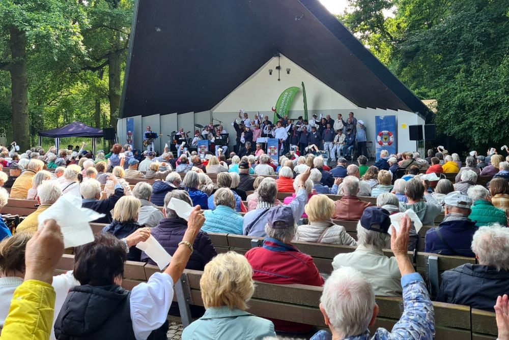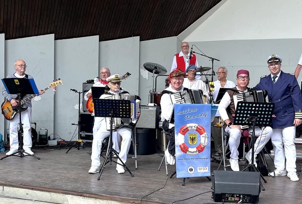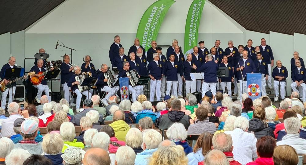 Beim traditionellen "Musiksommer im Fredenbaum", mit dem Shanty-Chor Dortmund, blieb kein Platz vor der Bühne frei. Diejenigen die zu spät (oder "zufällig vorbei") kamen mussten mit Stehplätzen auf den Wegen - oder auf den umliegenden Wiesen - vorliebnehmen.